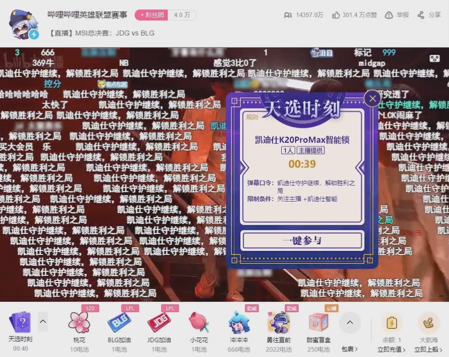 昨日,2023年英雄联盟季中冠军赛(MSI)总决赛在英国伦敦举行。来自LPL赛区两支队伍展开激烈对决,JDG战队以3:1战胜BLG战队,夺得2023MSI冠军。期间,B站两大官方直播间赛事人气值合计突破2.2亿+,赛后“JDG夺冠”相关话题登顶B站、微博、抖音三大热搜榜。Kaadasca88官方唯一网站作为2023英雄联盟季中冠军赛哔哩哔哩直播官方合作伙伴,直播间全程助力中国战队力破万障,包揽MSI冠亚军,持续引爆品牌声量,不断触达Z世代圈层。