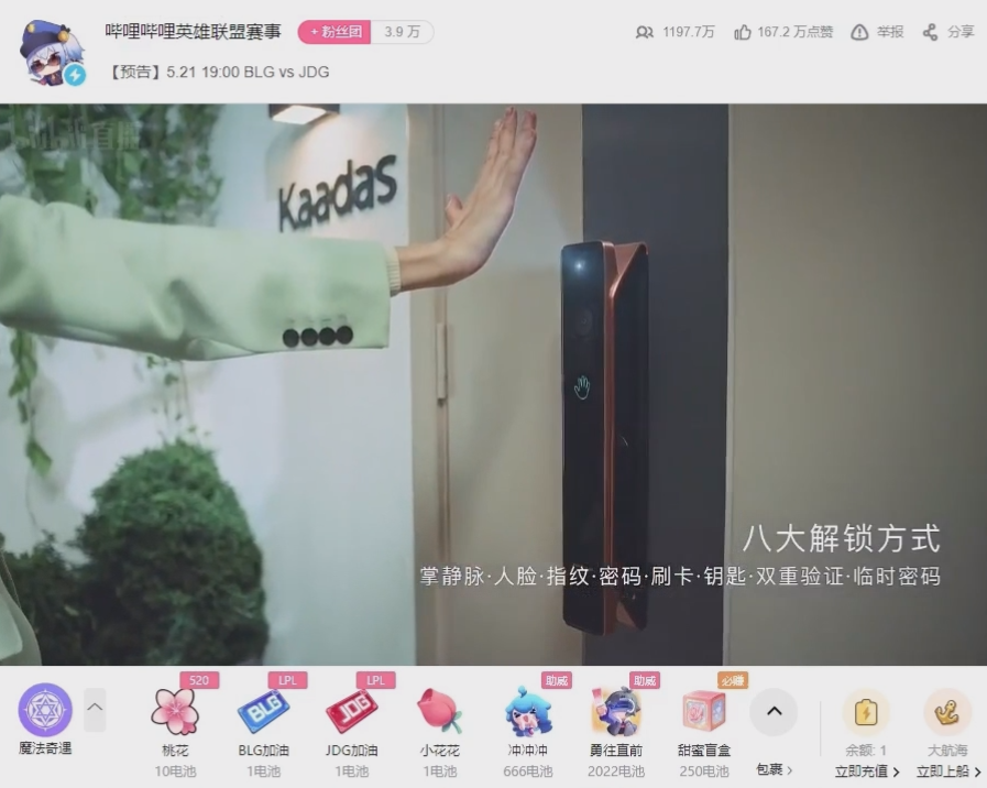 北京时间5月2日20:00,2023英雄联盟季中冠军赛在伦敦正式开赛。Kaadasca88官方唯一网站作为2023英雄联盟季中冠军赛哔哩哔哩直播官方合作伙伴,携旗舰新品K70 Pro Max掌静脉3D人脸猫眼视屏智能锁多维度亮相赛事直播间,开启硬核守护,助力中国战队出征MSI。